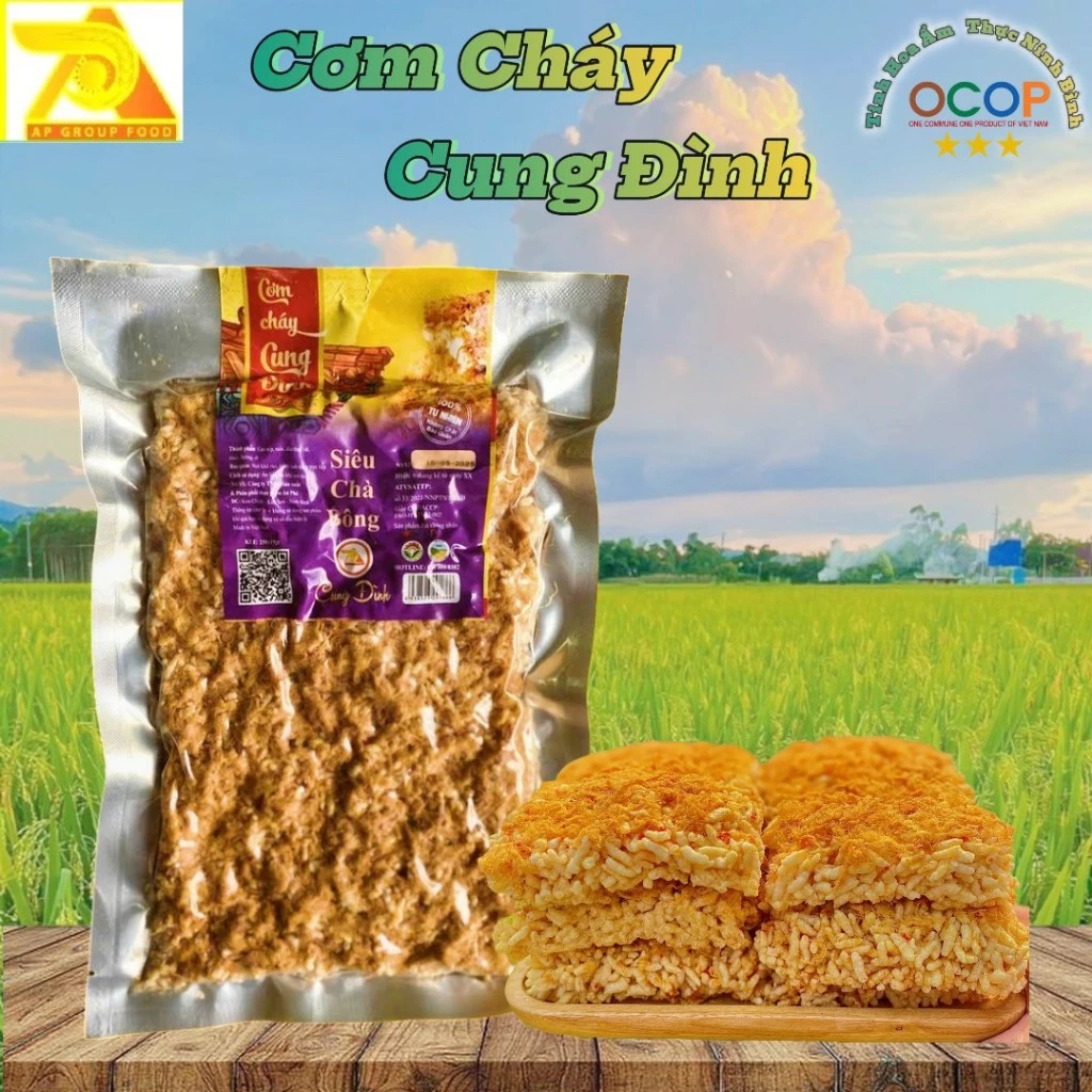 Sản phẩm [1 Tấm] COMBO 2 Gói 250g Cơm Cháy Chà Bông Cung Đình – Đồ Ăn Vặt Ngon Giòn – Đặc Sản Ninh Bình có giá 135000 VND và có thể được mua tại địa chỉ này. Với sản phẩm này, bạn có thể thưởng thức cơm cháy chà bông giòn rụm và ngon miệng mà không cần lo lắng về chất lượng.